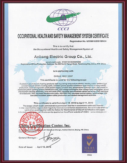 安邦電氣股份有限公司,總部位于北京市長安街,成立于2004年,注冊資金10088萬。安徽生產(chǎn)基地占地面積63000平方米,擁有66套各類生產(chǎn)線,其中進口生產(chǎn)線6套。國家高新技術(shù)型企業(yè),滁州市市長質(zhì)量獎企業(yè),專精特新“小巨人”企業(yè),擁有國家知識產(chǎn)權(quán)局授權(quán)的45項專利,其中發(fā)明專利28項 , 主筆《太陽能熱利用自限溫電熱帶安裝規(guī)范》行業(yè)標準,參編《自限溫電伴熱帶》國家標準、《工業(yè)和商業(yè)用電阻式伴熱系統(tǒng)》國家標準、《太陽能熱利用自限溫電熱帶》行業(yè)標準、《爆炸性環(huán)境 電阻式伴熱器》國家標準等7項國家標準。企業(yè)通過UL認證,國家強制性 CCC產(chǎn)品認證,ISO9001質(zhì)量管理體系認證,ISO14001環(huán)境管理體系認證,ISO45001職業(yè)健康安全管理體系認證,Q/SHS0001.1健康、安全與環(huán)境管理體系認證,歐盟防爆ATEX認證,歐盟CE認證,RoHS認證,俄羅斯海關(guān)聯(lián)盟認證,國家防爆電氣CCC證書。產(chǎn)品系列:集膚伴熱系統(tǒng)、電伴熱系統(tǒng)、電加熱器、電地暖系統(tǒng)、集儀器儀表、電線電纜、高低壓配電柜(箱)、電纜橋架、閥門管件等等設(shè)計、制造、銷售。產(chǎn)品應(yīng)用于航天航空、軍工、石油、石化、天然氣、機場、化工、鋼鐵、隧道、消防、養(yǎng)殖、融雪化冰、室內(nèi)供暖、國家電網(wǎng)及眾多電廠等等國家重點工程。出口美國、英國、德國、俄羅斯、韓國、日本、哈薩克斯坦、烏克蘭、伊朗等眾多國家。